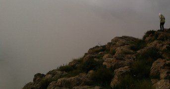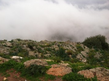 On the day we visited this hill outside Nazareth, it was raining, and the clouds seemed to settle over the cliff, blocking our view of the countryside around us. We should have been able to see Mount Tabor off to the southeast, but clouds and fog obscured the view. We could barely see parts of modern day Nazareth to the northwest of us.