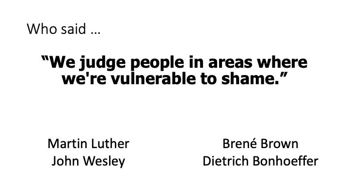 “…research tells us that we judge people in areas where we’re vulnerable to shame, especially picking folks who are doing worse than we’re doing. …  We’re hard on each other because we’re using each other as a launching pad out of our own perceived shaming deficiency.”